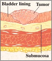As cancer cells multiply, the tumor grows. Bladder cancer begins in the lining of the bladder, and often doesn’t grow beyond that layer. As the tumor gets larger, it may invade (grow into) deeper layers of the bladder. It may also invade nearby organs, such as the prostate in men or the uterus in women. Cells can break off from the main tumor and enter the bloodstream or lymph nodes. Blood or lymph then carries the cells to other areas of the body, such as the bones, liver, or lungs, where a new growth may form. This process is called metastasis. The stage of cancer is based on where the cancer is and how much it has grown and spread. The stage is found by looking inside the bladder during cystoscopy and using tests that show images of the bladder, the areas around it, and parts of the body that the cancer may spread to. The staging system described below is a simplified one. Your doctor will most likely use a more detailed system.